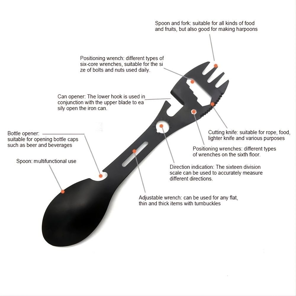 10-in-1 Multi-Functional Camping Spork; Stainless Steel Spoon Fork With Cutter Can Bottle Opener Wrench For Kitchen Outdoor Hiking Backpacking Accesso 10-in-1 Multi-Functional Camping Spork; Stainless Steel Spoon Fork With Cutter Can Bottle Opener Wrench For Kitchen Outdoor Hiking Backpacking Accesso 10-in-1 Multi-Functional Camping Spork; Stainless Steel Spoon Fork With Cutter Can Bottle Opener Wrench For Kitchen Outdoor Hiking Backpacking Accesso