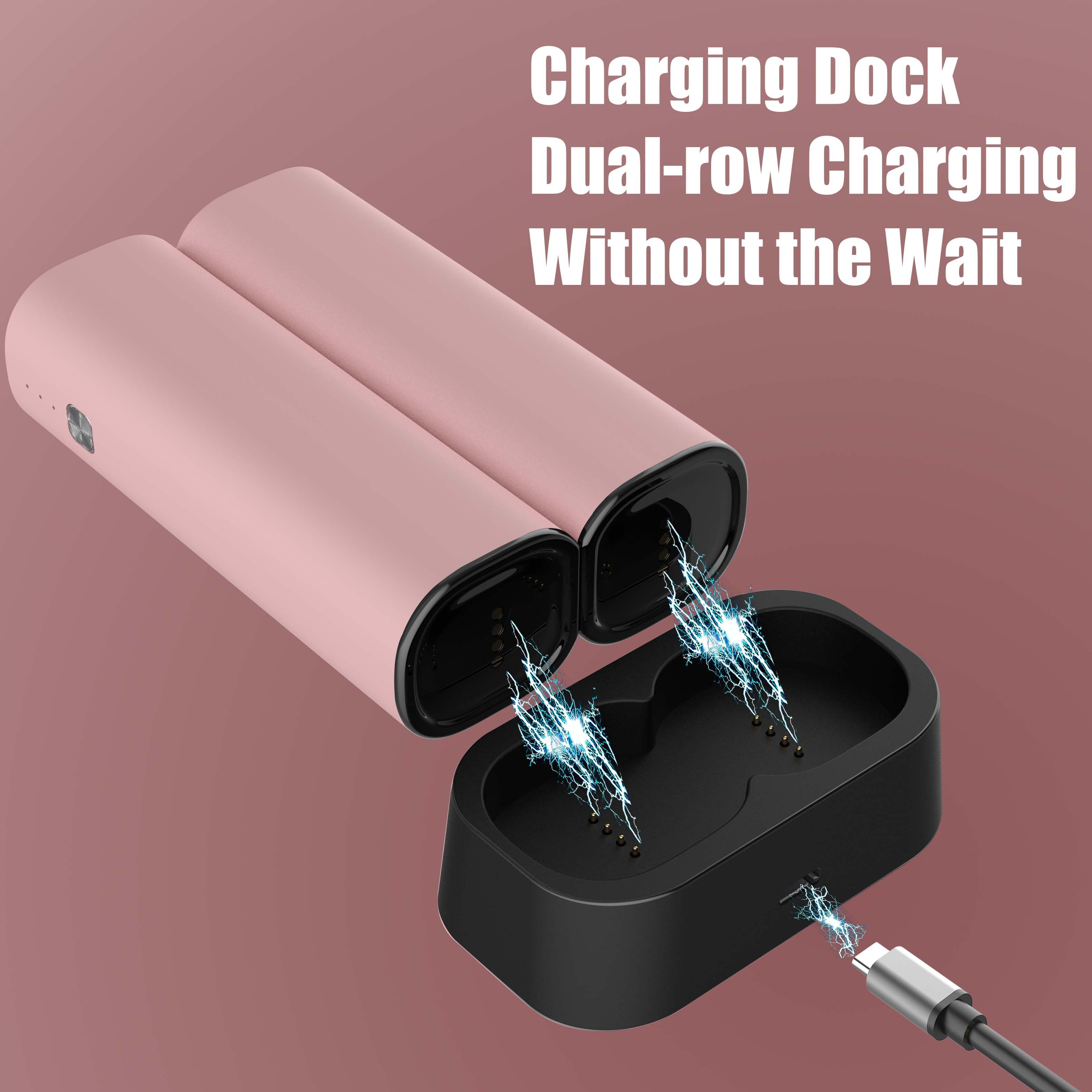 [New Update - Double Row Charging]The new upgraded model with a dual-row charging base can charge two hand warmers at the same time.Simply place the two magnetic hand warmers on the base,the thimble on the base will quickly charge the two hand warmers at the same time.